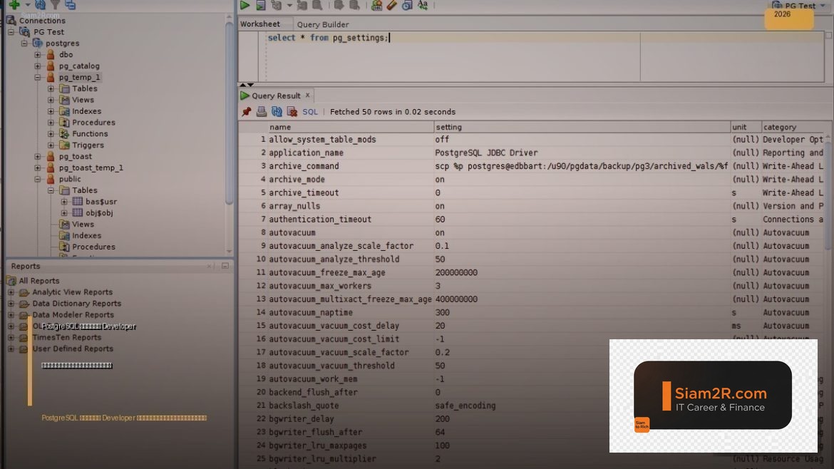 ทักษะ PostgreSQL → เพิ่มค่าตัว