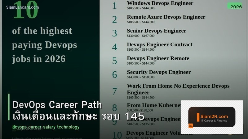 ในปี 2026 ค่าตอบแทนสายเทคโนโลยีในไทยเติบโตเฉลี่ย 15-25% ต่อปี ขณะที่สายงานอื่นเติบโตเพียง 3-5% การเลือกสายอาชีพที่ถูกต้องจึงมีผลต่อรายได้ตลอดชีวิตอย่างมาก บทความนี้จะพาคุณไปทำความรู้จักกับ DevOps Career Path เงินเดือนและทักษะ รอบ 145 อย่างละเอียดครบถ้วนทุกมิติ พร้อมตัวเลขจริง ตารางเปรียบเทียบ และคำแนะนำที่นำไปใช้ได้ทันที