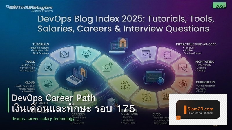 ในปี 2026 ค่าตอบแทนสายเทคโนโลยีในไทยเติบโตเฉลี่ย 15-25% ต่อปี ขณะที่สายงานอื่นเติบโตเพียง 3-5% การเลือกสายอาชีพที่ถูกต้องจึงมีผลต่อรายได้ตลอดชีวิตอย่างมาก บทความนี้จะพาคุณไปทำความรู้จักกับ DevOps Career Path เงินเดือนและทักษะ รอบ 175 อย่างละเอียดครบถ้วนทุกมิติ พร้อมตัวเลขจริง ตารางเปรียบเทียบ และคำแนะนำที่นำไปใช้ได้ทันที