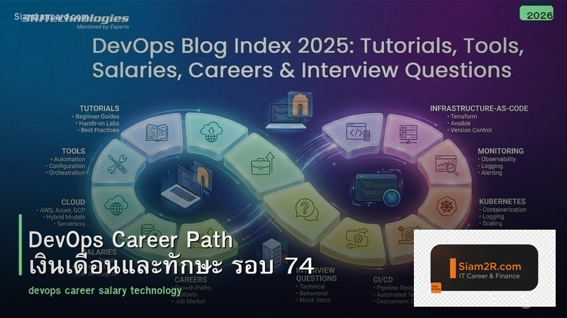 ในปี 2026 ค่าตอบแทนสายเทคโนโลยีในไทยเติบโตเฉลี่ย 15-25% ต่อปี ขณะที่สายงานอื่นเติบโตเพียง 3-5% การเลือกสายอาชีพที่ถูกต้องจึงมีผลต่อรายได้ตลอดชีวิตอย่างมาก บทความนี้จะพาคุณไปทำความรู้จักกับ DevOps Career Path เงินเดือนและทักษะ รอบ 74 อย่างละเอียดครบถ้วนทุกมิติ พร้อมตัวเลขจริง ตารางเปรียบเทียบ และคำแนะนำที่นำไปใช้ได้ทันที