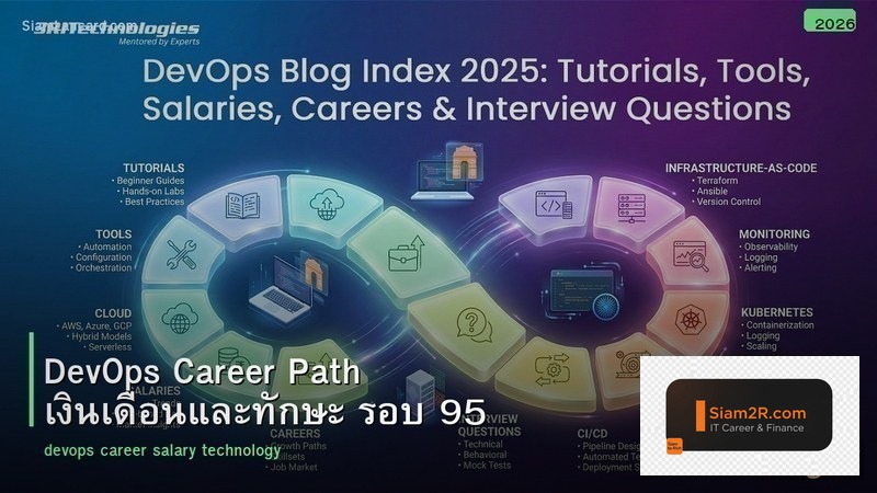 ในปี 2026 ค่าตอบแทนสายเทคโนโลยีในไทยเติบโตเฉลี่ย 15-25% ต่อปี ขณะที่สายงานอื่นเติบโตเพียง 3-5% การเลือกสายอาชีพที่ถูกต้องจึงมีผลต่อรายได้ตลอดชีวิตอย่างมาก บทความนี้จะพาคุณไปทำความรู้จักกับ DevOps Career Path เงินเดือนและทักษะ รอบ 95 อย่างละเอียดครบถ้วนทุกมิติ พร้อมตัวเลขจริง ตารางเปรียบเทียบ และคำแนะนำที่นำไปใช้ได้ทันที