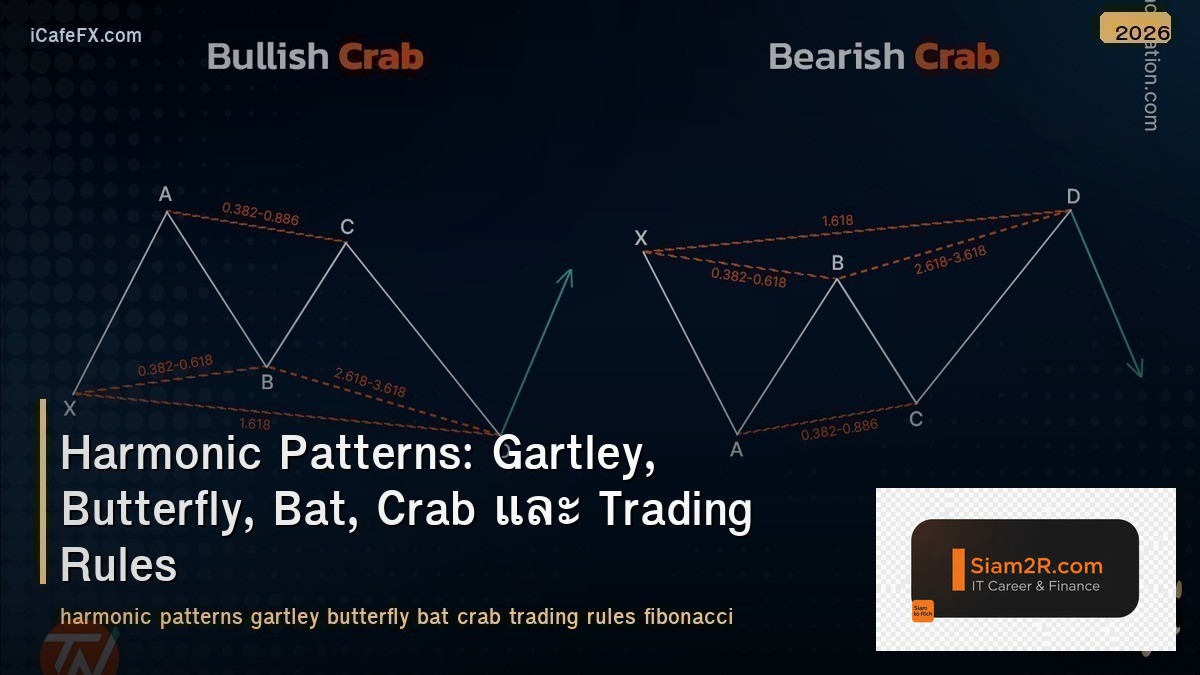ในโลกของการซื้อขาย (Trading) ที่เต็มไปด้วยความผันผวนและโอกาส การมีเครื่องมือที่ช่วยในการวิเคราะห์และคาดการณ์ทิศทางของราคาถือเป็นสิ่งสำคัญอย่างยิ่ง Harmonic Patterns คือหนึ่งในเครื่องมือเหล่านั้น ซึ่งเป็นรูปแบบราคาที่ใช้ความสัมพันธ์ของตัวเลข Fibonacci ในการระบุจุดกลับตัวที่อาจเกิดขึ้นในตลาด (Potential Reversal Zones – PRZ) บทความนี้จะนำท่านไปทำความรู้จักกับ Harmonic Patterns ที่ได้รับความนิยมอย่าง Gartley, Butterfly, Bat และ Crab รวมถึง Trading Rules ที่สำคัญในการนำไปประยุกต์ใช้