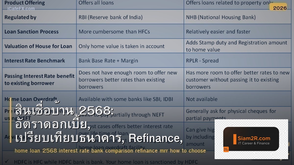 สินเชื่อบ้าน 2568: อัตราดอกเบี้ย, เปรียบเทียบธนาคาร, Refinance, MRR และวิธีเลือก