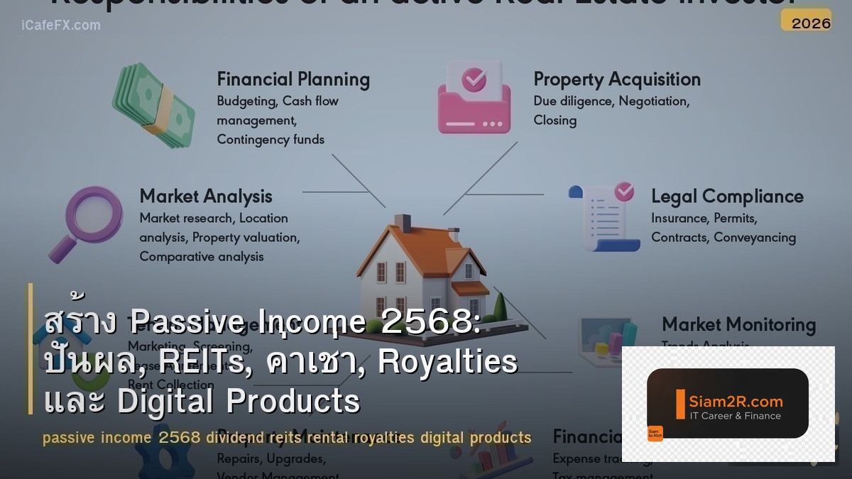 สร้าง Passive Income 2568: ปันผล, REITs, ค่าเช่า, Royalties และ Digital Products เป็นหัวข้อสำคัญในวงการ IT ที่ System Admin, Network Engineer และ DevOps Engineer ควรเข้าใจเป็นอย่างดี การรู้เรื่องนี้จะช่วยให้ทำงานได้มีประสิทธิภาพมากขึ้น แก้ปัญหาได้เร็วขึ้น และเป็นทักษะที่ตลาดแรงงานต้องการสูง