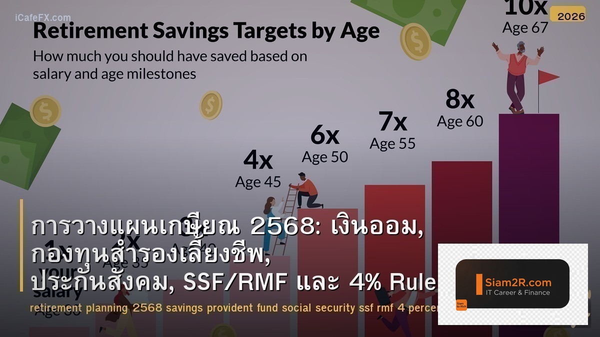การวางแผนเกษียณ 2568: เงินออม, กองทุนสำรองเลี้ยงชีพ, ประกันสังคม, SSF/RMF และ 4% Rule